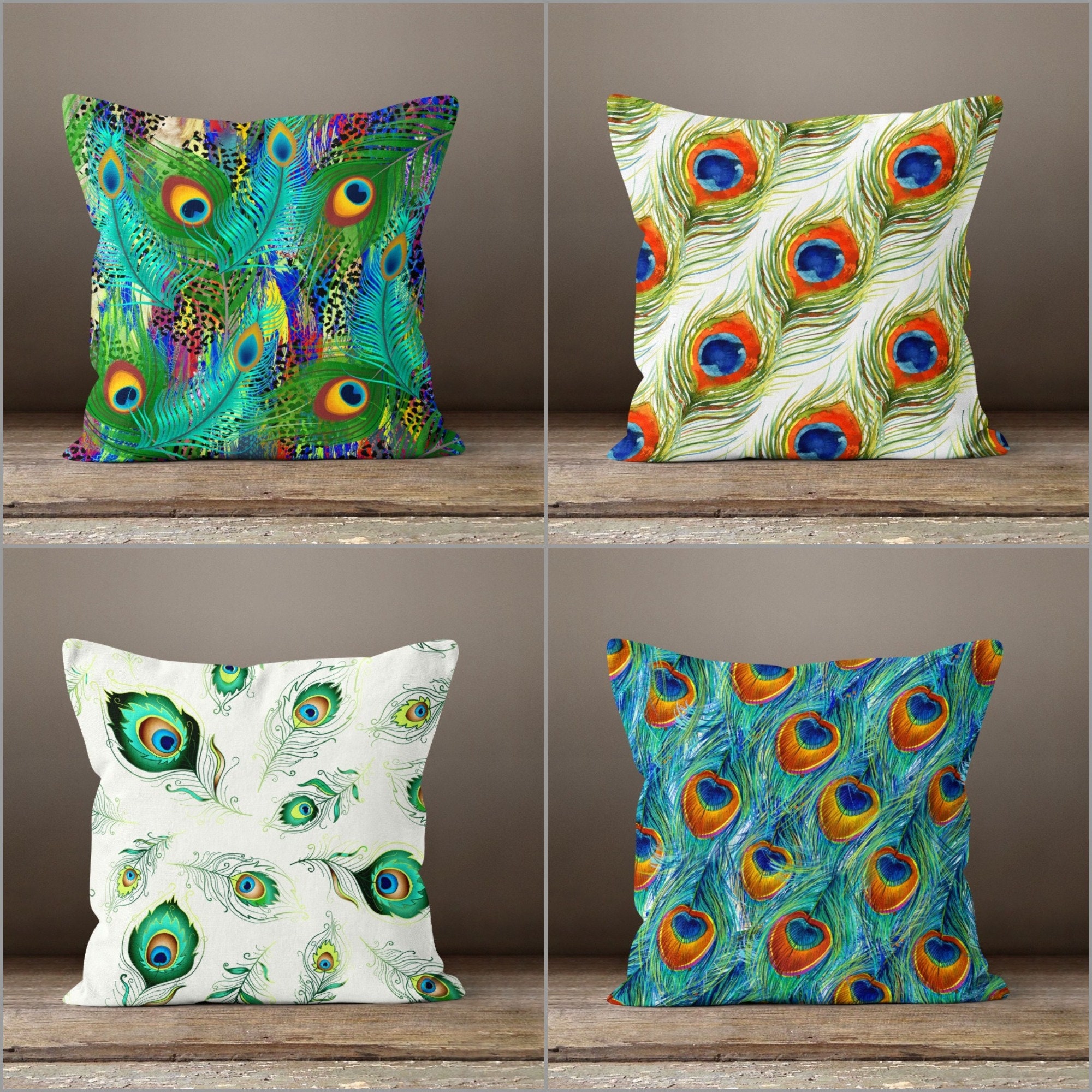 Peacock Feather Pillow Casedecorative Cushion Coverboho Etsy Australia